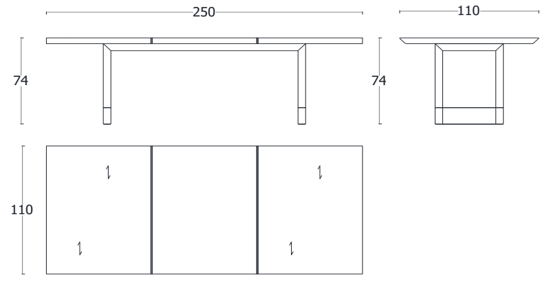 L 250 × P 110 × H 74