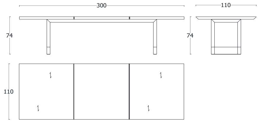 L 300 × P 110 × H 74